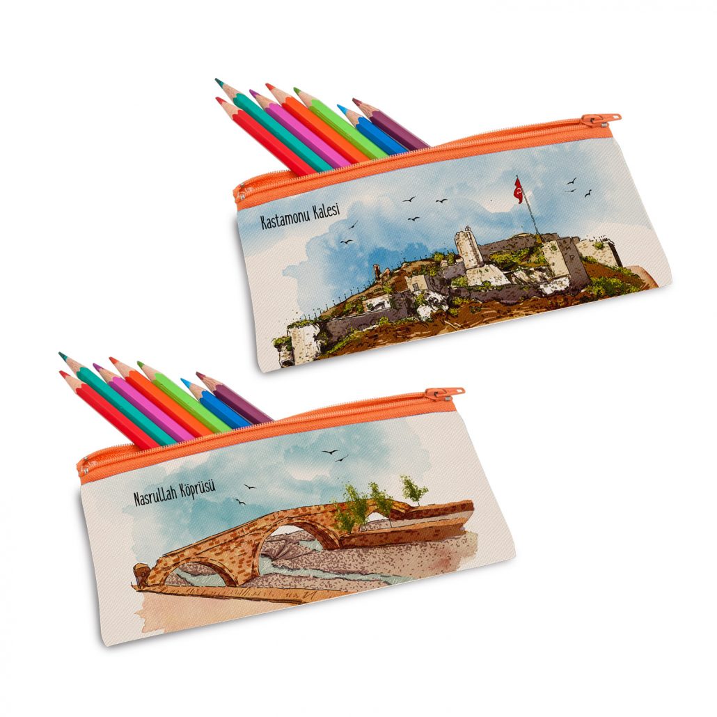 Açıklama : Şehir sembollerinin yer aldığı özel tasarım kalemlikler, kalemlik kumaşı veya kanvas kumaştan üretilebilmektedir.