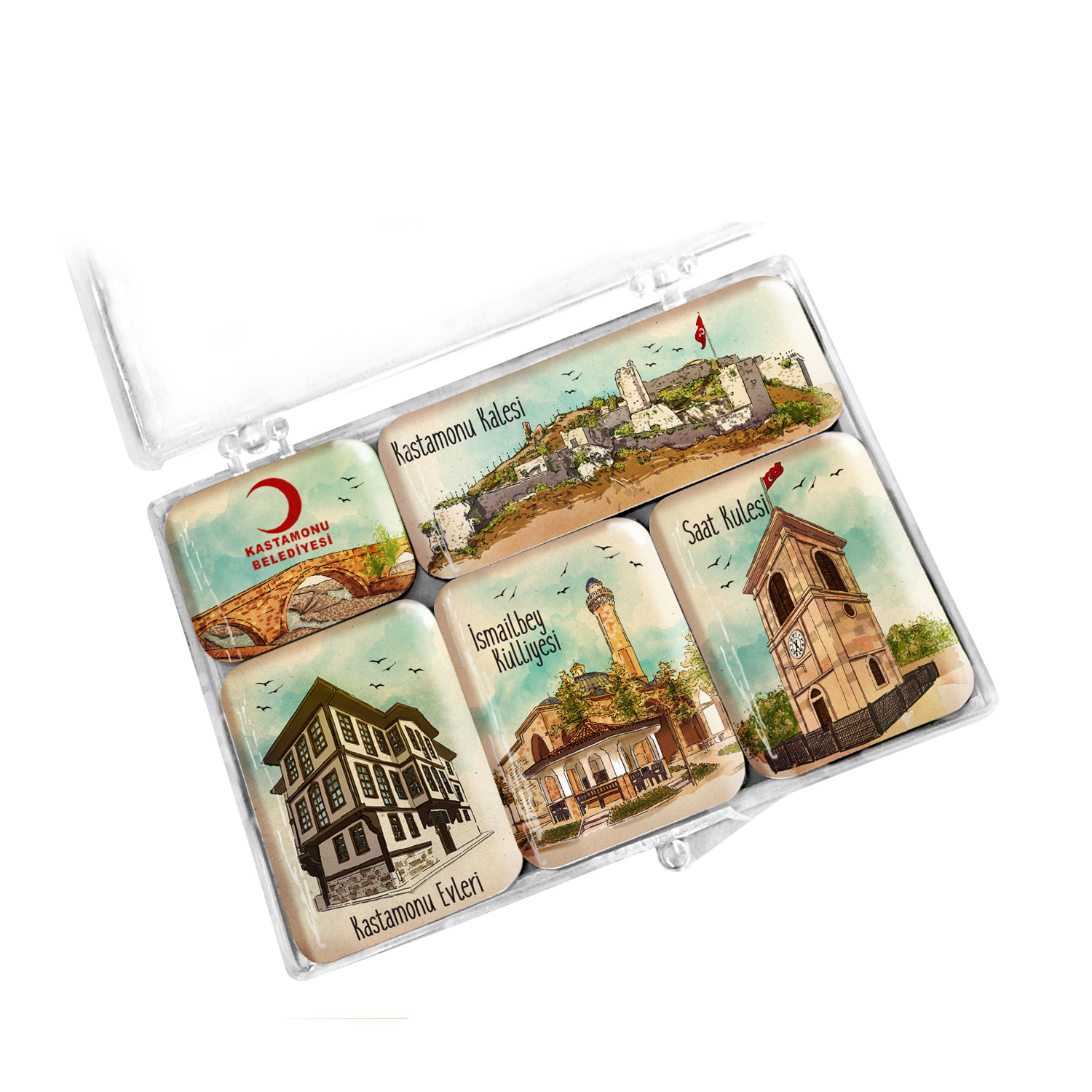 Kutu içeriği : 5 mini magnet, tanıtım broşürü,şeffaf kutu içerisinde